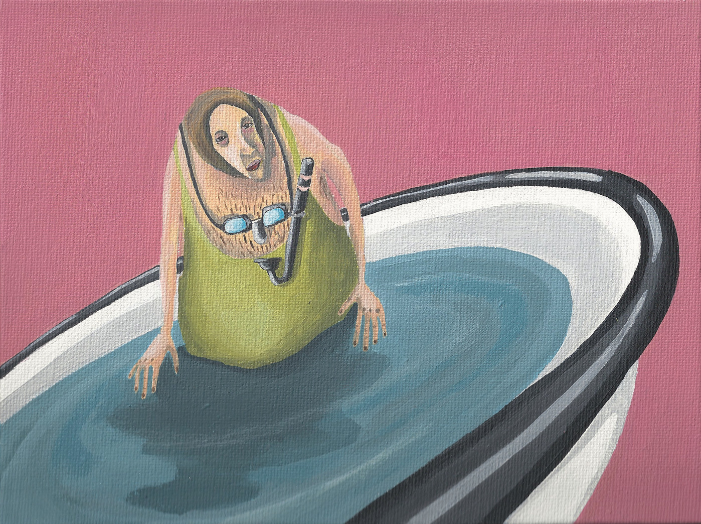 In Alltäglichkeiten kurze Augenblicke des Vergessens erhaschen. Träumereien aufsuchen und einfangen, Lacher loslösen. Geschichten spinnen. Ein gehörtes Wort, eine kurze Szene, gestreifte Blicke. Erinnerungen wecken, an urkomische Gestalten oder gehörte, gerochene, gesehene Situationen. Ein leises Zwinkern, ein Schmunzeln auf den Farben. Angefangene Erzählungen, die nach dem Weg fragen. Skurriles, das möglich wird.