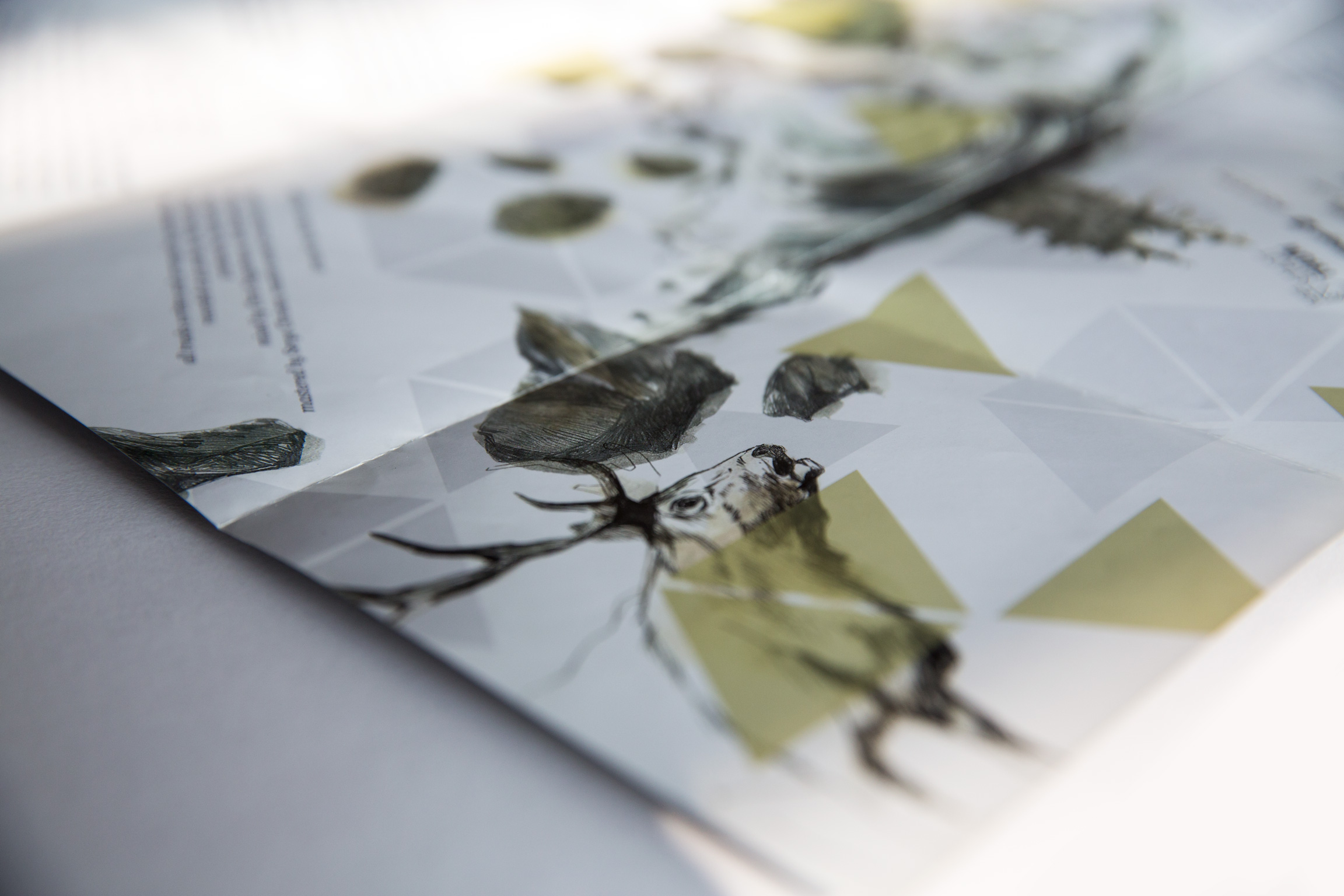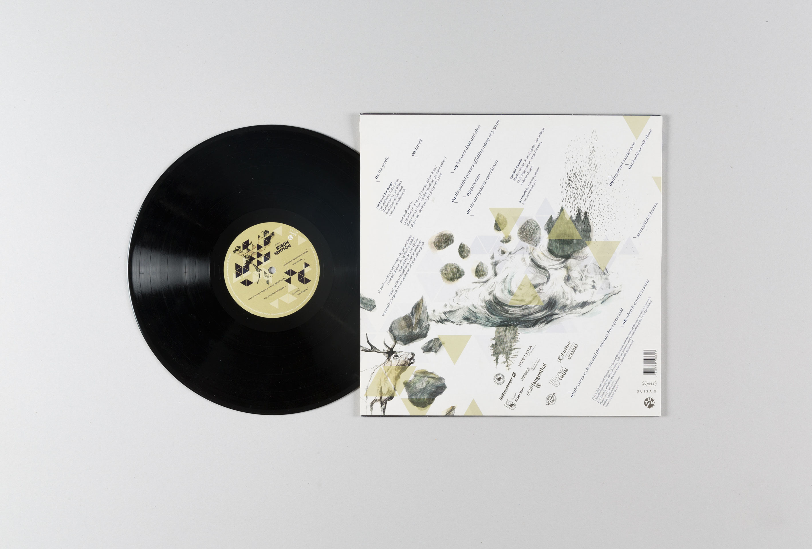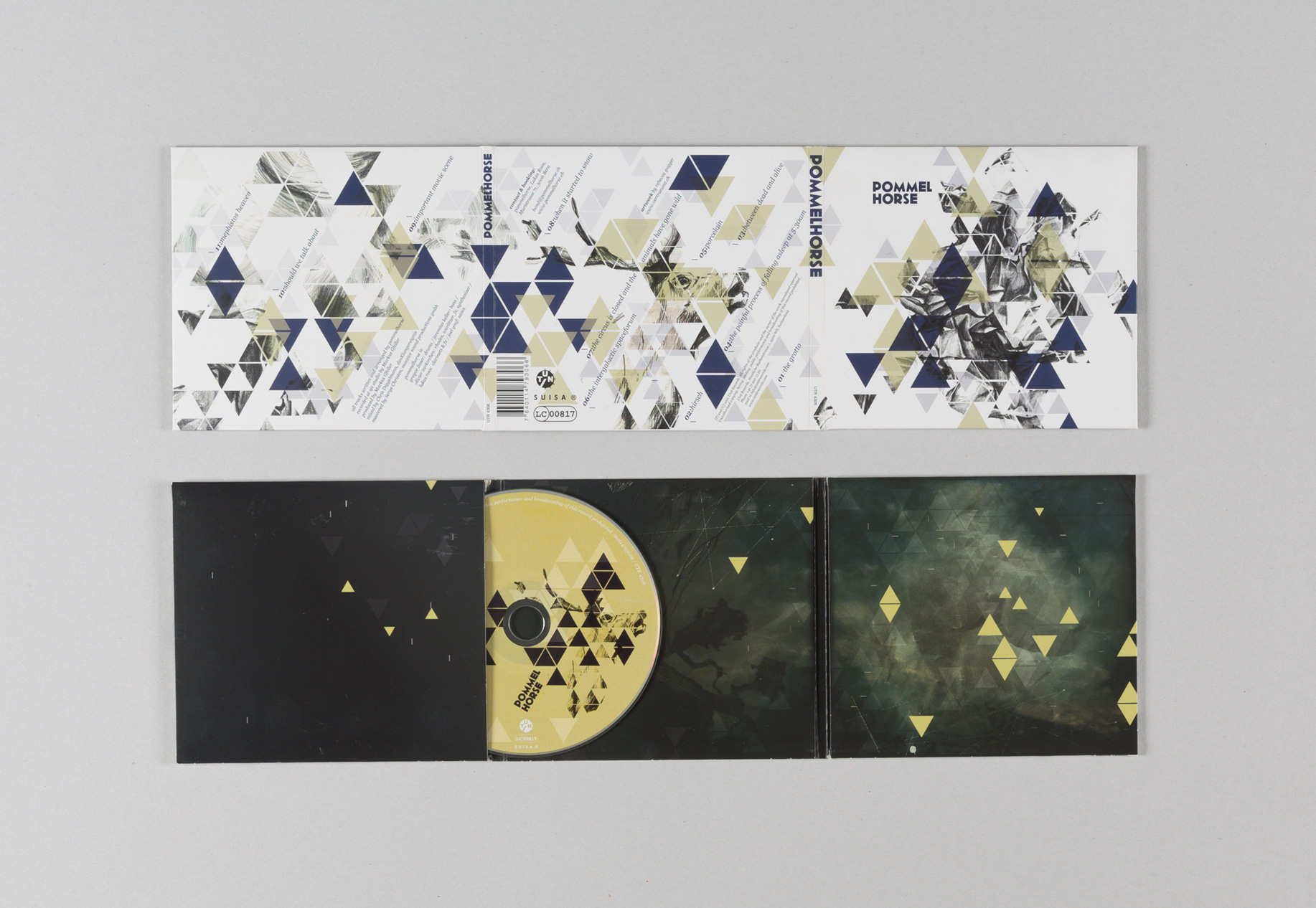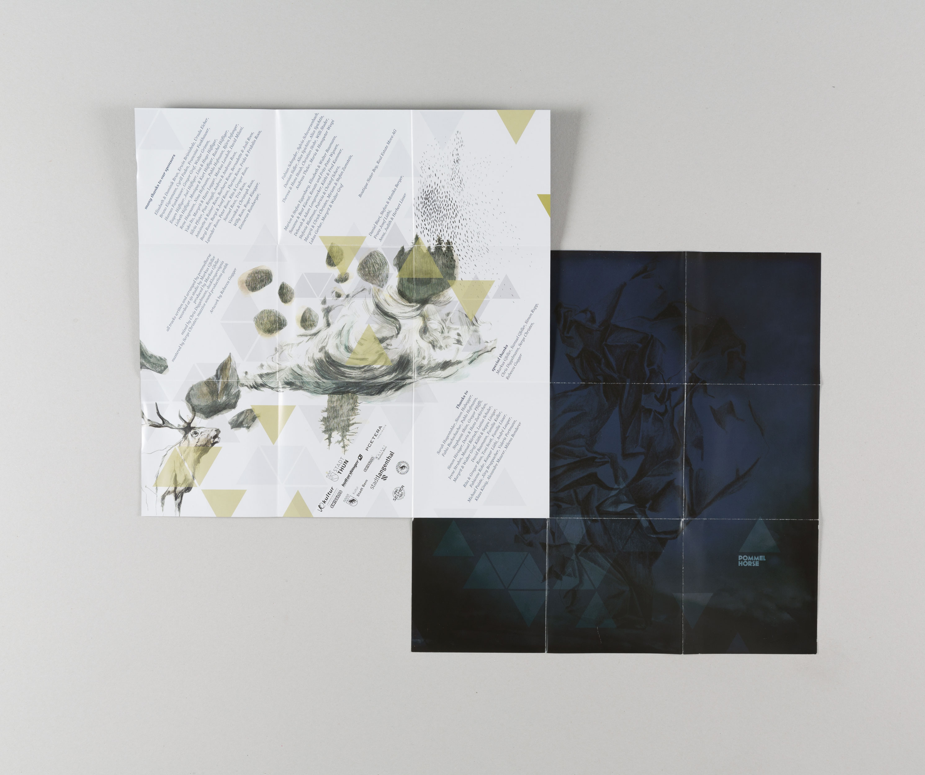 Klare, grafische Formen im Wechselspiel mit handgezeichneten Illustrationen bilden eine eigene, traumähnliche Welt – ähnlich der Musik. So werden Aussen und Innen, Vorder- und Rückseite kontrastreich in der Farbgebung, den Bildinhalten und der Helligkeit gestaltet.